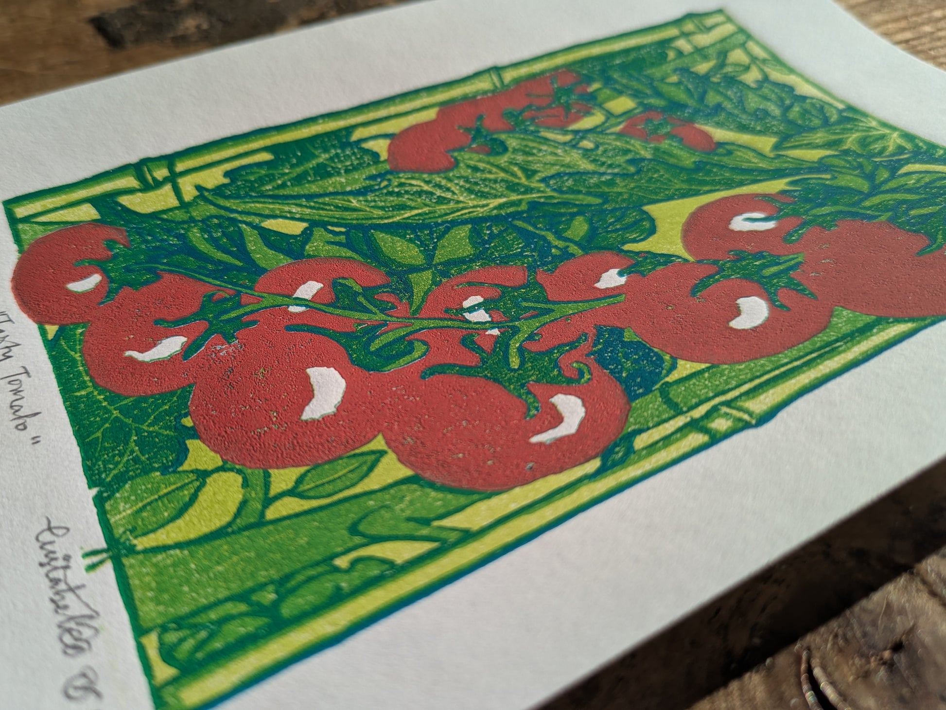 A5 Reduction Relief Print "Tasty Tomatoes"