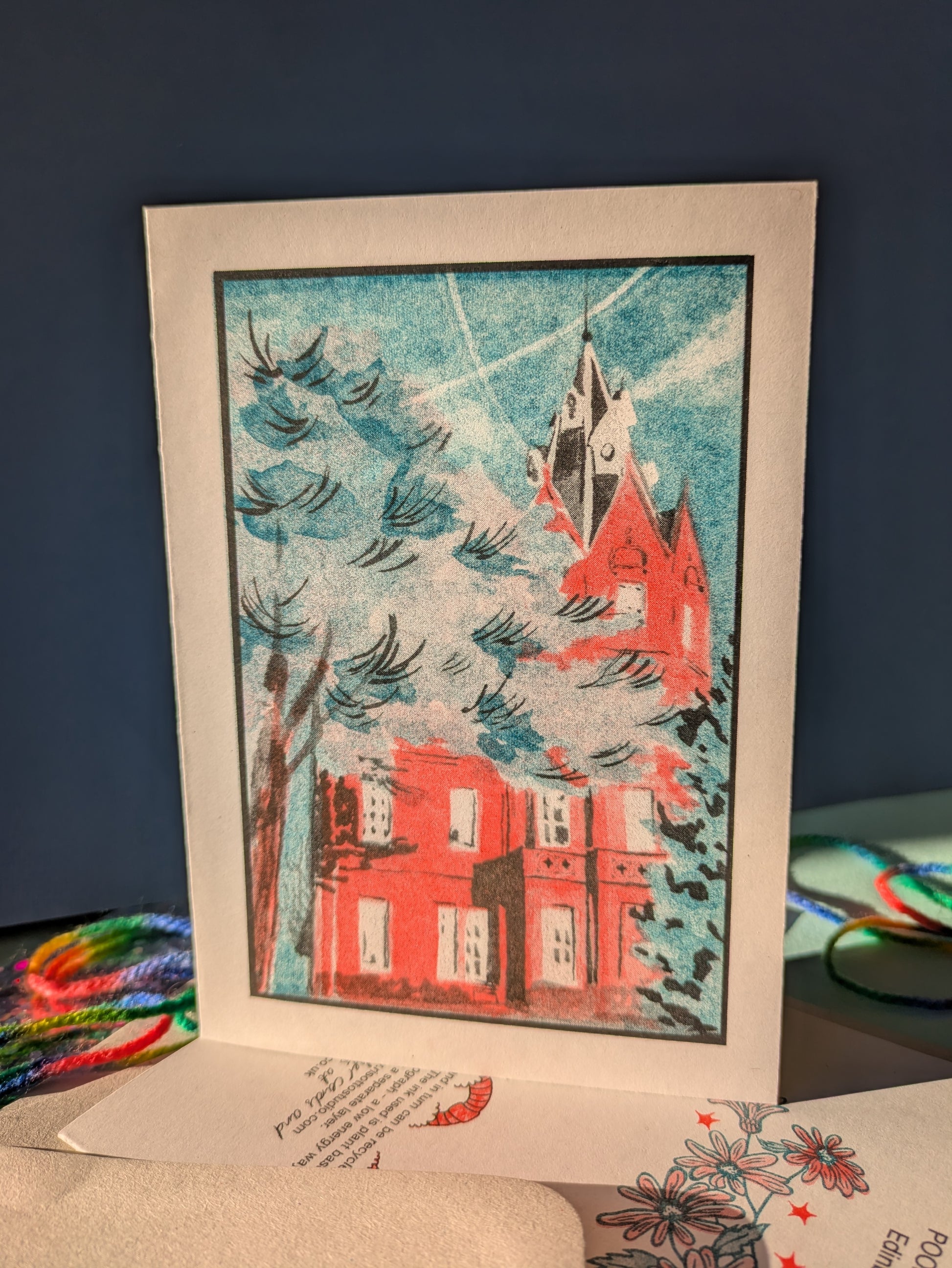 The process of Risograph printing lends itself to being a bit like lino printing - in that each card has its own perfections, and can be a very very slight variation from one card to the next - individual, unique and special.